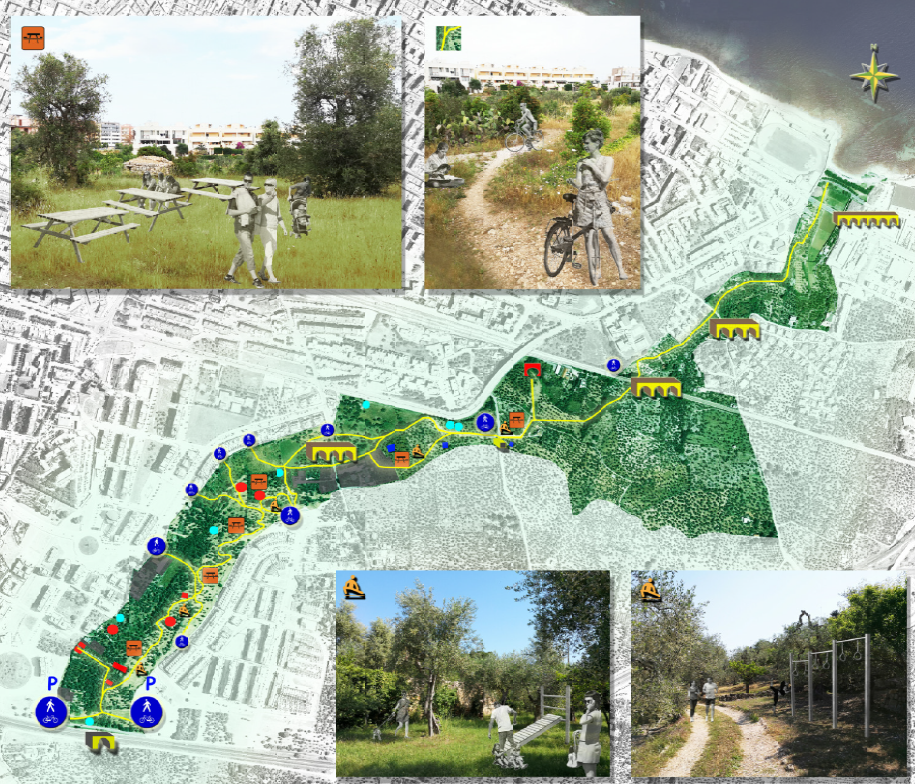 Obbiettivo del presente progetto è quello di attivare funzionalmente il parco della Lama Martina, attraverso la creazione di infrastrutture verdi e aree funzionali verdi a servizio dei cittadini, e nel contempo tutelare e promuovere la conoscenza del singolare contesto storico, florofaunistico e paesaggistico offerto dalla Lama Martina. La salvaguardia, la difesa e la valorizzazione del bene “suolo” è il motivo dominante nonché la prospettiva comune delle idee progettuali proposte. Il grande “solco” che attraversa la città da sud a nord, sul versante est, anche se in minima parte interrotto da uno sviluppo edilizio scellerato degli anni '70 e '80, costituisce un importantissimo polmone verde a ridosso dell'abitato, una platea naturale con alternanza di tratti terrosi e arborei. L’intervento proposto, senza alterare la caratteristiche geomorfologiche e orografiche del sedime, vuole essere una idea concreta per una perfetta “sinergia urbana”. Il significato infrastrutturale della Lama Martina è concepito come elemento di “cucitura” sociale, ambientale e culturale di una città concepita in comparti stagni che trovano concreta difficoltà di dialogo tra di essi. L'elemento Lama visto non più come elemento detrattore dell'edificazione ma come anello di unione e di cucitura tra la città e la campagna, tra la periferia e il mare, tra le nuove zone di espansione e la città consolidata.
